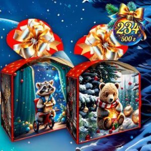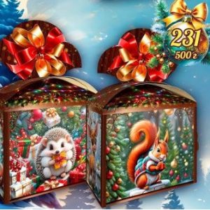 Новорічна упаковка з картону 500г №231